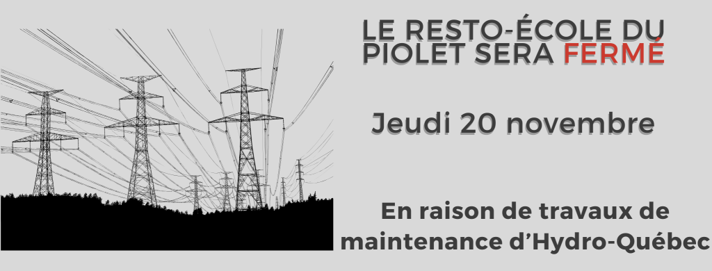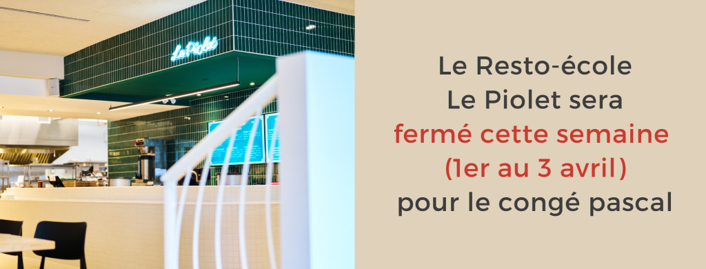 Le Resto-école Le Piolet propose un menu en service au comptoir ou pour emporter.
